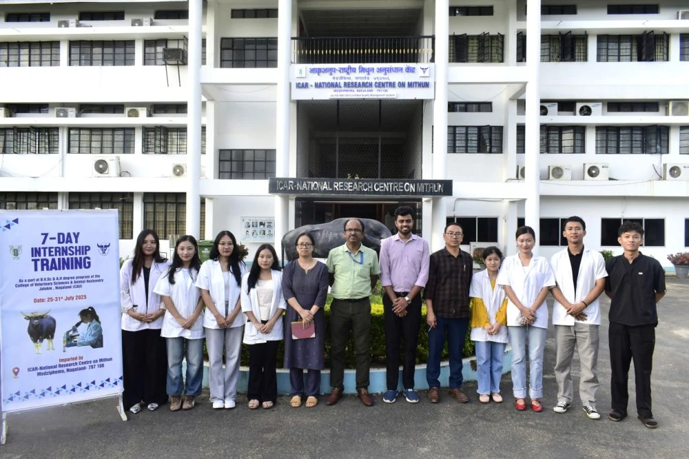 ICAR-National Research Centre on Mithun, Medziphema, concluded a seven-day internship programme for veterinary students from College of Veterinary Sciences & Animal Husbandry (CVSc & AH), CAU, Jalukie. The programme, held from July 25 to 31, focused on hands-on training in various aspects of Mithun management, including scientific animal husbandry and veterinary practices. Structured with daily assessments and reporting, the programme ensured the quality and effectiveness of the training. The internship was supervised by Senior Scientist Dr Kobu Khate and Scientist Dr Narendra VN.The 11th convocation of Institute of Christian Leadership Training (ICLT) under Liangmai Baptist Association (LBA) was held under the theme ‘Be ready in season and out of season’ at Mission Centre Tening on July 31. Rev NK Joseph, Secretary Men Department LBA was the main speaker. The programme was presided by Kijiule LBA Office Assistant and special music was presented by members of Tening Village Baptist Church Youth. The benediction prayer was said by Pastor Nampibo Nkwareu Baptist Church.St Joseph University, Chümoukedima, in collaboration with ICAR-NRC on Mithun and Department of Biotechnology, organized a workshop on Intellectual Property Rights (IPR) to raise awareness among students and researchers. The event, held at the university’s seminar hall, was chaired by Dr Lorenbeni Kikon, Assistant Professor of Biotechnology. The programme featured a motivational talk by Dr Jayanta Kumar Chamuah, Senior Scientist at ICAR-NRCM, followed by an insightful overview of IPR in India presented by Dr Narendra VN, Scientist at ICAR-NRCM. An interactive quiz competition was also conducted to engage participants.Research Forum of Department of English, St Joseph University, Chümoukedima hosted its ‘Scholastic Day’ under the theme Research Scholars’ Guidance and Progress Assessment Program, a platform for research scholars to present their ongoing academic work on July 30. A total of 40 participants attended the programme, where scholars delivered presentations showcasing their research findings and methodologies. The session was evaluated by Dr Thokchom Sunanda Devi, Head of the Department and Dr Alemmenla Walling, Coordinator of the Research Forum. Both Evaluators offered insightful feedback and guidance, fostering academic excellence and strengthening the department’s research culture. In support of school children during ongoing monsoon season, MLA of 9th Kohima Town Constituency, Dr. Tseilhotuo (Ato) Rhutso distributes umbrellas to the students of Government Schools at Naga Bazaar and New Market, Kohima on July 31.Zeliang Students’ Union Dimapur welcomed Mairidin Newmai at Dimapur Airport following his victory as the Main Event fighter (Bantamweight 61 KG) at the Ronin Fighting Championship in Bangalore on July 26. The union congratulated him for his outstanding achievement, which brought immense pride to the Zeliang community and Nagas as a whole. Mairidin Newmai Competed at the Main Event (Bantamweight Category-61kgs) against Prakhar Shubashanh of Sikkim at Ronin Fighting Championship held in Bangalore on July 26. Ronin Fighting Championship is one of India's finest MMA Promotion and the Biggest Professional MMA Promotion in the South India Region.
