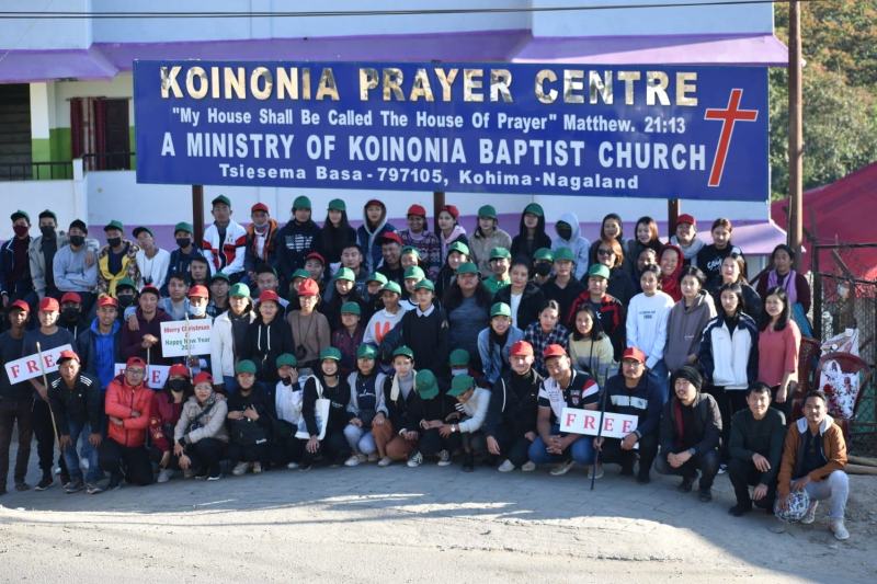 Koinonia Baptist Church held its annual free distribution of coffee, tea and sticky rice cookies distribution to Kohima-Wokha-Mokokchung bound travellers in National Highway near Koinonia Prayer Centre Tsiesema on December 20. It is an annual event of the church organised by the Youth and Jr CYE department in celebration of Christmas. Around 150 volunteers catered to more than 2100 travellers on the day. Benediction and Thanksgiving prayer was led by Pastor Neibalie Kiewhuo. (Photo Courtesy: Koinonia Baptist Church)