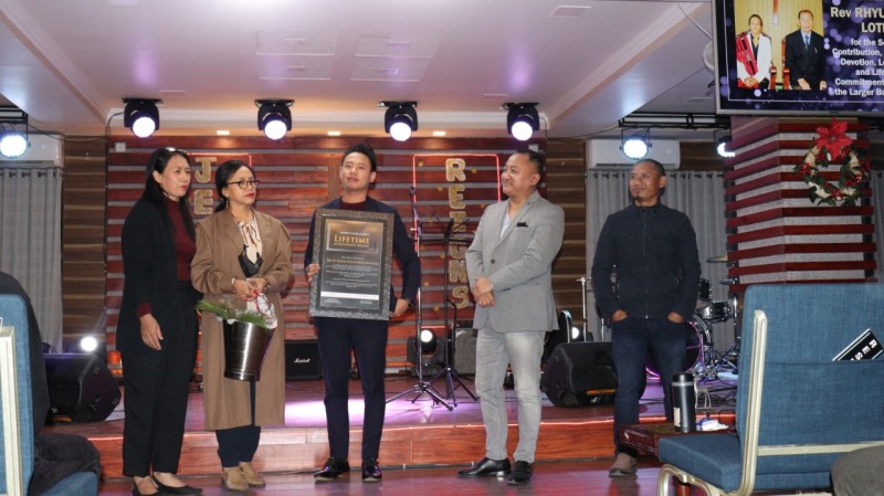 Father's House Church, Chümoukedima held their Annual Christmas Worship Concert cum Lifetime Achievement Award 2021 on December 17. The Special Lifetime Achievement Award 2021 in selfless contribution, dedication and commitment to God was presented to Rev Rhyutsemo Ngullie, 83 years who had served as Pastor of Tsungiki Baptist Church for the last 56 years. The concert had singers and musicians namely Coronation Choir (Golden Crown College), Zayiechütuo Suohu Vebeizono, Avikonuo shuya, Tia Longkumer Yankee Dance Space, Ebenezer orphanage home, Aloke Yepthomi, Maria and Friends from Patkai College, Rapper Imli Lee, Zuchobeni Tungoe, Former VLCC Femina Miss India, Nagaland 2020, Senti Chang, Ronnie Odyuo and the Band amongst others. A Special Memoriam Certificate were Handed to the family Members of Lt Rev Dr Shiwoto Assumi, Noted Ambassador of Christ and Lt Teplok Amri of Changki Village, Social Worker and Visionary man.