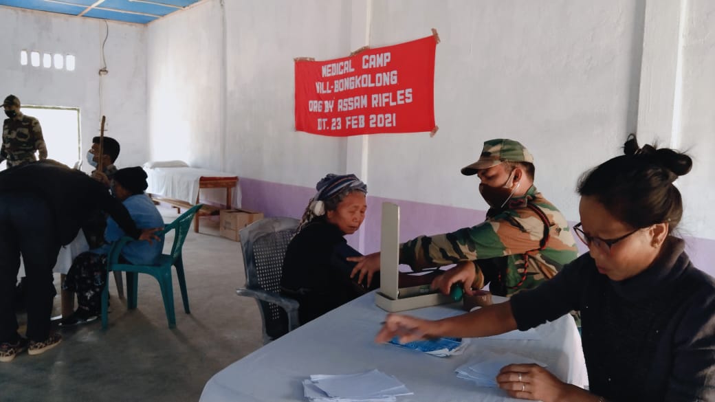 Jalukie Battalion of Assam Rifles under the aegis of IGAR (North) conducted medical camp and COVID-19 awareness campaign at Bongkolong village of Athibung subdivision, Peren on February 23. AR personnel conducted medical checkup of all the villagers. They were briefed about the various health and hygiene methods to be implemented during this crisis and also provided with necessary medicines. A total of 181 beneficiaries including 72 males, 79 females and 30 children benefitted from the camp. (Photo Courtesy: IGAR North)