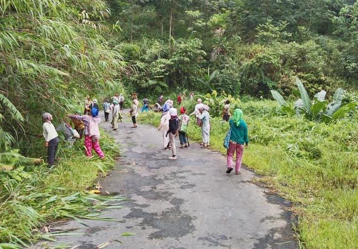 Shemnyüching villagers from Longleng district doing community social work by clearing roadside grass along the NEC road stretches fall in their jurisdiction on July 7. (Photo Courtesy: Langoi)