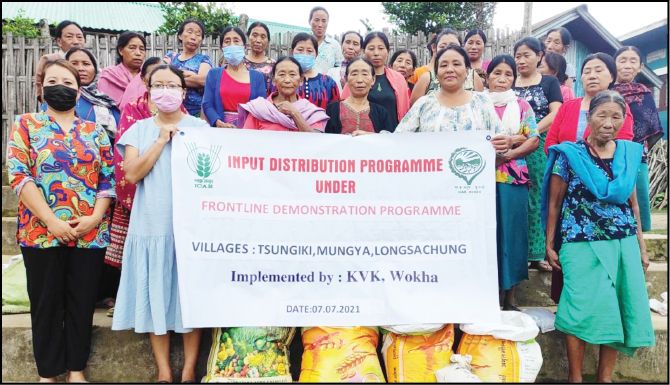 KVK Wokha conducted frontline demonstration on soybean at Tsungiki village with a total of 30 participants on July 7. The programme was chaired by Dr Mhalo Tungoe, ACTO (Agril Extension) and lecture on ‘Package of practices of Soybean’ was delivered by Bendangla Imsong, ACTO (Plant Breeding). The demonstration was conducted in three villages – Mungya, Tsungiki and Longsachung.