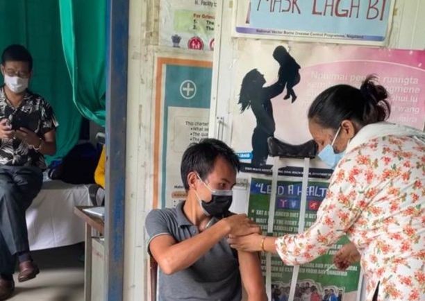 Peren District PWDs President, Ngaugongpe receiving the first dose of COVID-19 Vaccine on June 17 during the vaccination drive for PWDs held at Mhainamtsi Primary Health Centre, Peren. (DIPR Photo)
