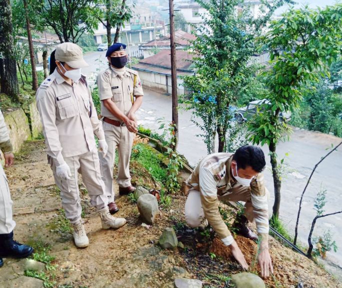 DEF Phek in collaboration with Forest Department Phek today conducted Plantation Drive to commemorate World Environment Day 2021 at Police Reserve Phek and in all 9 Police Stations/Outpost under Phek district. It planted around 2000 tree saplings. V Demo, District Forest Officer, Phek participated in the plantation drive and exhorted the participants.