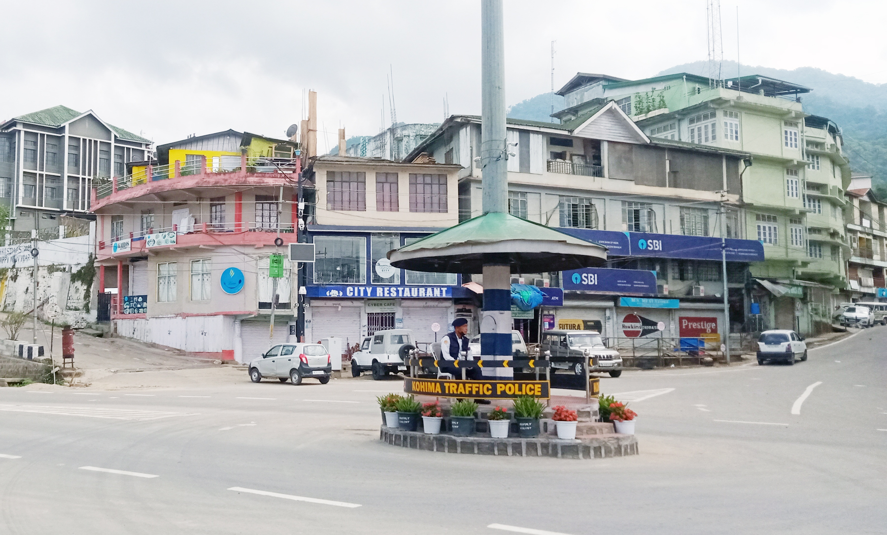 Traffic policeman on duty at one of the busiest traffic points at PHQ junction in Nagaland’s state capital Kohima on day 20th of total lockdown on June 3. (Morung Photo by Chizokho Vero)