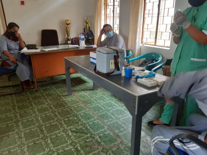 Special vaccination drive for the inmates of the District Jail Mokokchung was held on June 3. It was conducted under the supervision of Dr Shalong Medical Officer, Ungma PHC and his staffs. A total of 40 inmates and 26 frontline workers were vaccinated. Dy Superintendent L Bumeng Khiam and the staffs of District jail Mokokchung were present at the session site to monitor the programme. (Photo Courtesy: CMO office Mokokchung)