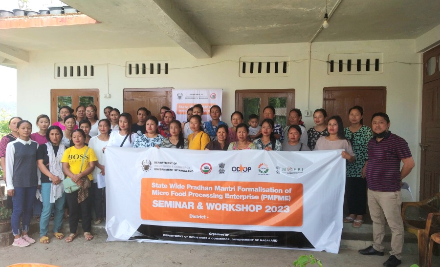 Department of Industries and Commerce, Nagaland as part of their State-wide sensitization drive (Phase-I), conducted seminar and workshop on Pradhan Mantri Formalization of Micro Food Processing Enterprises (PMFME) scheme at Mokokchung town and Akuluto, Zunheboto on May 8. With the support of RD-NSRLM, NULM-SUDA, NEIDA and DICs, various prospective individual entrepreneurs and groups like SHGs, FPOs, FPCs and co-operative societies from the respective districts participated in the programme. It was held with the aim to encourage potential entrepreneurs and groups to avail assistance under the scheme to up-grade their existing units and also set up new micro food processing enterprises. The Department will be covering different blocks of various districts during the Phase-I of the sensitization drive.