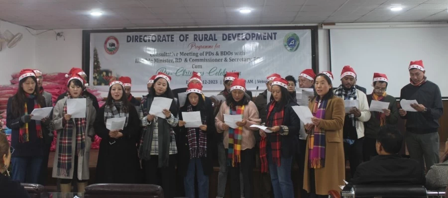 Chakhro Angami Kuda Union (CAKU) induction programme for the new team of office bearers for 2023-2026 tenure was held at CAKU Hall at Phevima, Dimapur on December 16. The new team includes: President-Neingutuolie Kenguriise; Vice Presidents-Rovisielie Nakhro and Meyiezol Kikhi; General Secretary-Virhi Keretsii; Assistant General Secretary- Melevi Natso; Treasurer-Babu Rio; Information and Publicity–Kevitho Kera; and Legal Advisor-Nathaniel Kevichiisa. (Photo Courtesy: CAKU) The Children’s Ministry & Music Ministry of Chakhesang Baptist Church Kohima organised Children’s Christmas musical nite entitled “In a Galilee Far Far Away” at CBCK on December 17.Directorate of Health & Family Welfare celebrated Advent Christmas on December 19 at DoHFW lobby. The programme was chaired by Dr Tiala Director (ME&RS) and Principal Director Dr Ritu Thurr shared ‘What Christmas means to me’. Chunlikha Block, under the Tseminyu District's (HUB) empowerment of women initiative by the Department of Social Welfare, Government of Nagaland, observed Panjikaran Abhiyaan 2.0. The outreach program, led by Ruokuosetuo Tetso EAC Tseminyu Hq, took place on December 19 at Chunlikha Panchayat Hall. The objective of the program is to sensitize and register eligible beneficiaries for the Pradhan Mantri Matru Vandana Yojana, a maternity benefit scheme for pregnant and lactating mothers aligned with Mission Shakti – Beti Bachao Beti Padhao. (DIPR Photo) A Consultative Meeting of Project Directors (PDs) and Block Development Officers (BDOs) cum Pre-Christmas celebration took place at Rural Development Conference Hall, Kohima on December 19. During the meeting, programme wise presentation and discussion was also held on PMAY-G and MGNREGA. The consultative meeting was followed by Pre-Christmas celebration, Christmas carols and offering for the orphanage. RD Commissioner & Secretary Kevisa Kense and RD Director Azenuo Pienyü shared Christmas greetings.