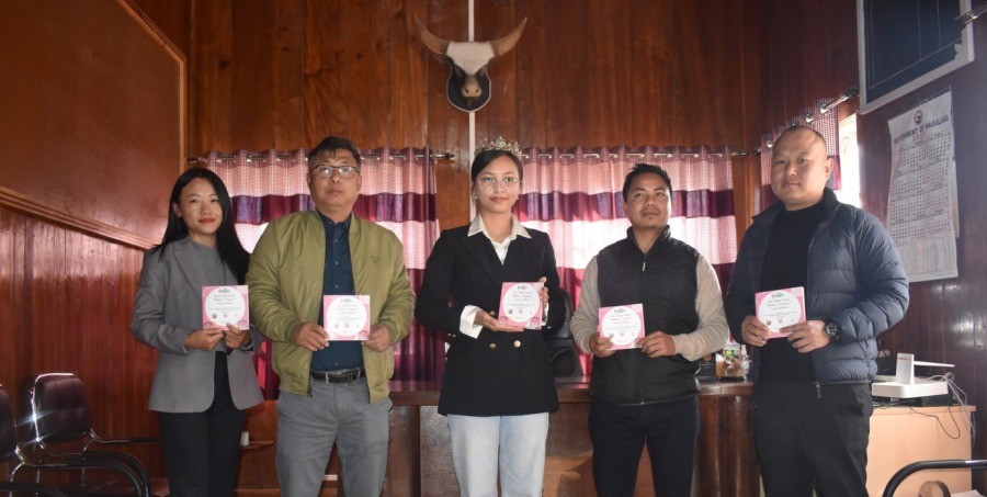 In collaboration with Boditive India, the District Administration & District Hub for Empowerment of Women in Noklak, under Beti Bachao Beti Padhao, unveiled a booklet on menstrual health titled 'Sob Maiki Nimite Mahina (Periods) Laga Jankari.' The launch ceremony was conducted by Miss Khiamniungan 2024 Thongkoi at the DC's Office Chamber, Noklak on December 19. The booklet, printed in Nagamese, aims to provide valuable information on menstrual health and will be distributed among women and girls. Previously, the English version was printed and distributed among girl students. (DIPR Photo)