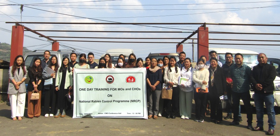 One-day training for SMOs, MOs & CHOs was held on National Programme for Climate Change and Human Health (NPCCHH) cum training on National Rabies Control Programme at the Conference hall, Office of Chief Medical Officer, Mokokchung on March 30. The trainees were introduced and trained on NPCCHH, heat-related illnesses, identification of rabid dog and prevention of dog bite including prophylaxis/vaccination of pets, animal bite management & rabies prophylaxis and reporting procedures for both the programmes. The trainers were Dr Lhishelo Tsuhah DVBO & DSO, Dr Limanaro DPO-NCD, Dr Watitoshi, Veterinary Assistant Surgeon Mokokchung, Dr Joshua L, Medical Officer CHC Tuli and Dr Toshimongla Longkumer, Epidemiologist (IDSP) Mokokchung. (Photo Courtesy: CMO Mokokchung)