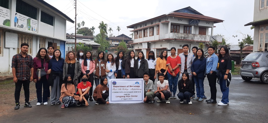 The students of the Department of Sociology, Fazl Ali College, Mokokchung visited the Longjang Arju Centre at Longjang village, Mokokchung on April 1. Seen in the picture are the students of Longjang Arju centre and FAC students along with their mentors and teachers.