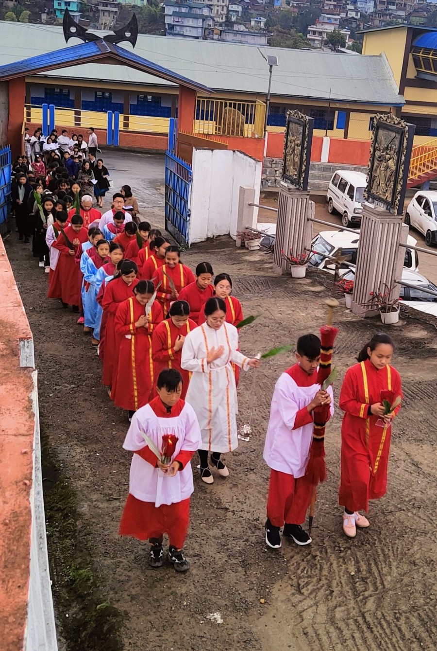 Christ King Church Kohima Village celebrated Palm Sunday on April 2. The main celebrant of the Holy Eucharist was Fr Joseph SDB, Parish Priest, Christ King Parish, Kohima Village.