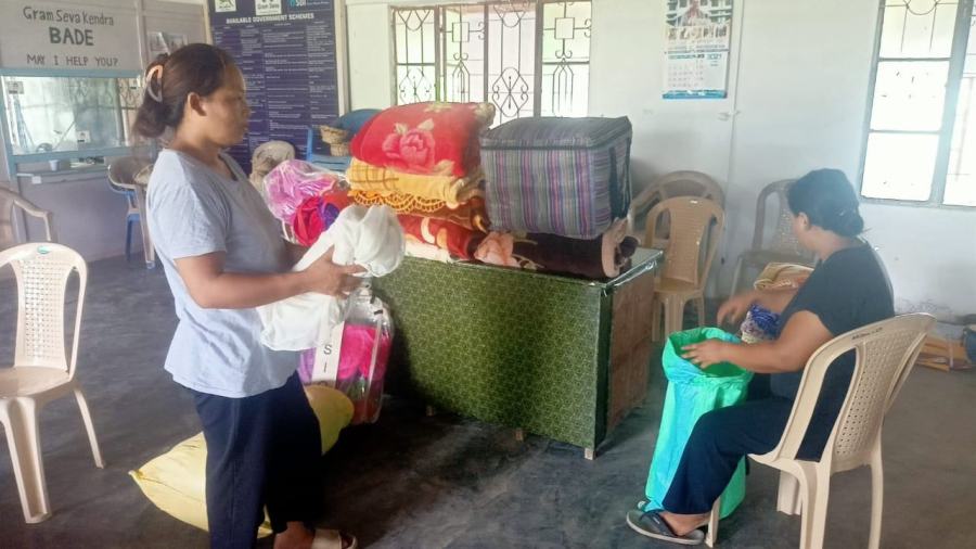 NSRLM SHG members from Bade village, BMMU RD Block Dhansiripar, collectively contributed and donated mosquito nets, blankets, clothes, etc. to the displaced families in Manipur.