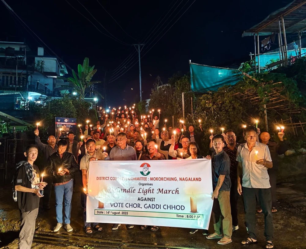 173 Battalion CRPF, stationed at Airfield Dimapur, concluded its ‘Har Ghar Tiranga’ campaign by visiting orphanages and an old age home. Commandant Ashok Kumar Yadav and personnel distributed groceries, sweets, and national flags, and hoisted the Tricolour with residents.Dimapur District Citizens’ Forum visited Mother Teresa Charity Home, River Belt Colony, Nuton Basti Dimapur on the occasion of 79th India Independence Day on August 15. Members from Bengali Samaj, Sikh Samaj, Muslim Council Dimapur, Rongmei Naga Indigenous Forum, Kachari Tribal Council Nagaland and Kuki Union Dimapur represented the DDCF. The visiting team met the Charity Home’s management, interacted with the inmates, shared words of encouragement, spent meaningful time with them, and donated grocery items during the visit.District Congress Committee (DCC) Mokokchung, in solidarity with the nationwide protest, participated in the “Massive Candlelight March Against SIR” at the DCC Mokokchung Bhavan on Thursday evening. Holding candles, party members raised slogans including “Vote Chor, Gaddi Chhod”, calling for electoral transparency. The protest, organized in NPCC and DCC Bhavans across Nagaland, urged the Election Commission to release digital voter rolls for public and party audit. DCC Mokokchung stated that signature campaigns and rallies will follow in the coming days to sensitize the public on the issue. (Morung Photo)Kohima Municipal Council (KMC) High School Ward councilor Kelhosenuo Khruomo with the Panchayat executives, chairman and GBs of 7 colonies after the distribution of solar street lights on August 13. Fifty solar street lights have been donated by Kekhrielhoulie Yhome, Advisor, school education to Ward-1 to be installed within their localities.Nagaland Contractor’s & Supplier’s Union (NCSU) Head Office Kohima visited Bright Morning Star Children’s Home (BMSCH) Kohima on the occasion of 79th Independence Day on August 15. NCSU vice president KL Setuo greeted the children and encouraged them to work hard to excel in life. During the visit, the Union provided foods items to the Children’s Home, according to a press note issued by NCSU general secretary John Kath.Ao Kaketshir Mungdang (AKM) commemorated the 79th Naga Independence Day at its office premises in Mokokchung on August 14. The Naga national flag was hoisted by AKM Vice President Onenpong, followed by a commemorative speech from Advocate Takoyaba, who reflected on the significance of the day. The International University, Nagaland, celebrated the 79th Independence Day with flag hoisting by Registrar Dr Roopam Bachhil, who urged students to uphold work ethics, discipline, and personal responsibility. Director (Vocational) Dr ZaviseRume echoed the same values while paying tribute to freedom fighters. The event concluded with the national anthem, instilling pride and unity among all present.Principal of Pranab Vidyapith Hr Sec School, Dimapur, Monoj Bhattacharjee, unfurls the national flag during the school’s 79th Independence Day celebration on August 15 as students sing the National Anthem. The event featured a keynote address by the Principal, a speech by Class-12 student Evelyn Darneimawi Hmar, and cultural programmes, and concluded with a vote of thanks by Vice-Principal AK Roy.
