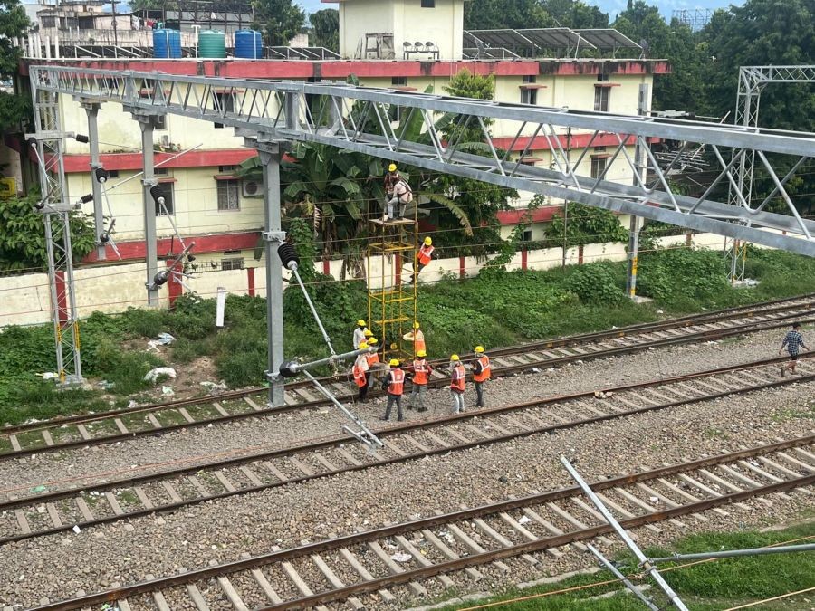 Workers engaged in electrification of railway tracks at Dimapur railway station on August 23. This has been part of the redevelopment and modernisation plan for the 120 year old station which was announced earlier this month by the Central Ministry of Railways. (Morung Photo)