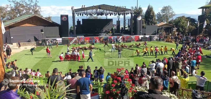 Department of Youth Resources & Sports organized Tug of War at the Main Arena, Kisama on December 7. In the men’s category, the Chakhesang Cultural Troupe defeated the Garo tribe by 2-0, and in the women’s category, the Rengma Cultural Troupe defeated the Kuki tribe. The quarter final and final matches will be played on December 8, right after the cultural presentation in the morning session. The first and second prize winners will be awarded Rs 15000 and Rs 10000 respectively. (DIPR Photo)