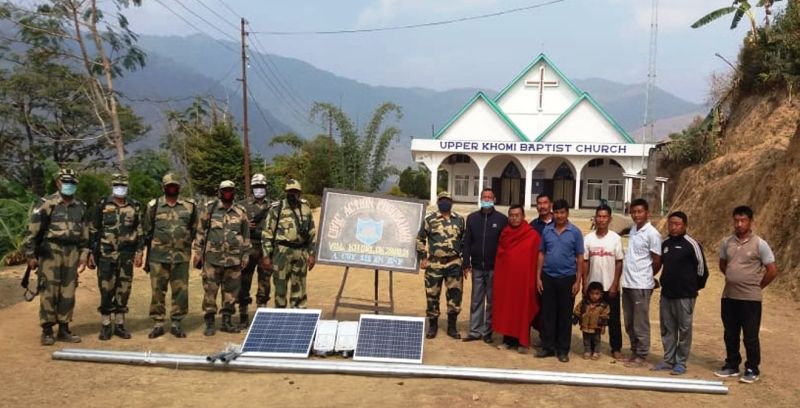 111 Bn BSF donated solar lights to Upper Khomi village under civic action programme on February 28. (DIPR Photo)
