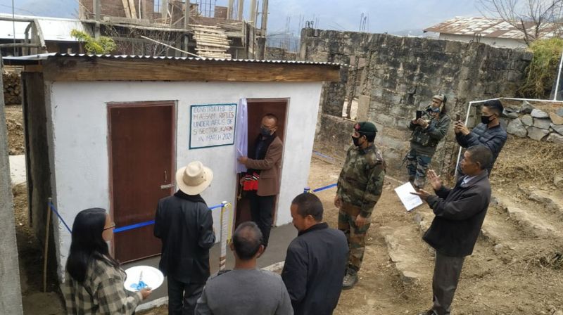 SDO(C), Chizami Vekuto Vero, inaugurating public toilet at Razeba Town Local Ground constructed by 14th AR, Phek under the aegis of 5th Sector IGARN on March 15. (DIPR Photo)