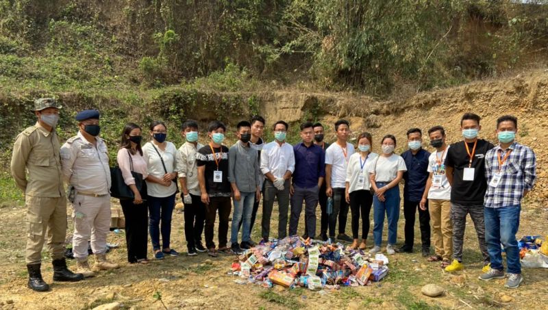 Diphupar Naga Students’ Union (DNSU) in collaboration with District Tobacco Control Cell, Dimapur and District Anti Tobacco squad (DATS) conducted a search and seizure of tobacco products within the 100 meters yard (yellow line) of educational institutions in Diphupar jurisdiction under the COTPA Act 2003 on March 16. (Photo Courtesy: DNSU)