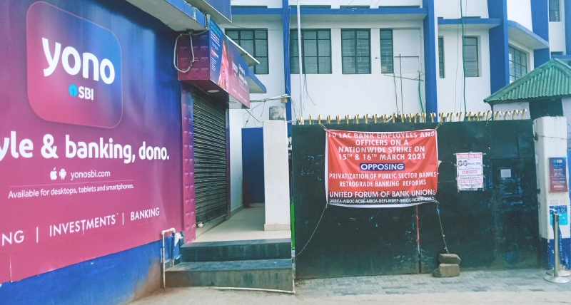 Joining the nationwide bank strike, banks in the state capital Kohima remain closed for second day (March 16). Bank unions under the banner of the United Forum of Bank Unions (UFBU) called for a nationwide two-day strike against the privatisation of public sector banks and retrograde banking reforms. (Morung Photo)