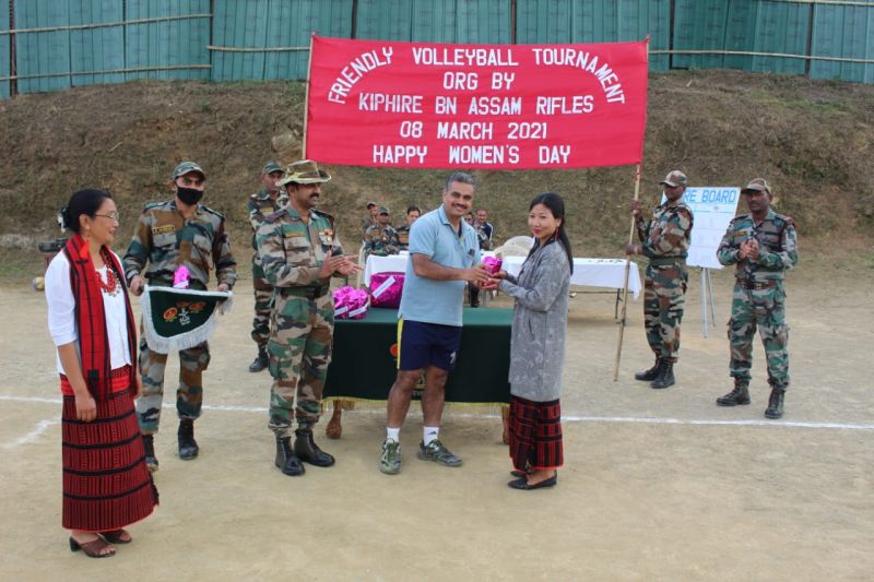 Kiphire Battalion of Assam Rifles under the aegis of HQ IGAR (N) organised a friendly volleyball tournament to mark international women's day at Kiphire. The tournament witnessed participation from teams of Assam Rifles, 14 IRB, USSC and Pungro Town. The chief guests of the event were President and members of Kiphire Area Mothers association along with Rajashekara, IPS, DIG Range Tuensang. (Photo Courtesy: IGAR N)