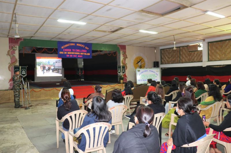 Mokokchung Battalion of Assam Rifles under the aegis of HQ IGAR (North) celebrated International Women’s Day at Mokokchung with the theme ‘Choose to Challenge.’ Representatives from diverse fields such as teachers, doctors, shopkeepers, farmers and housewives of various Self Help Groups from Mokokchung shared their stories. Chubala, CMO of Mokokchung Dist as the chief guest felicitated Sentikala, Moanaro Imchen and Nurses Association of India, Mokokchung with certificates of appreciation for their contribution towards society during the difficult times of COVID-19 in Mokokchung. (Photo Courtesy: IGAR N)