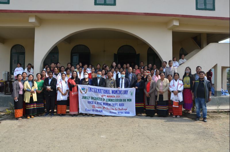 The District Administration, KVK Mon, KNSK and ATBC Women’s Department jointly with Krishi Vigyan Kendra, Mon celebrated International Women’s Day at ATBC, Aboi, Mon. Chumlamo, ADC Aboi, Lithrila Sangtam, SDO (C) and Major Sushil Gill, 13th Assam Rifle graced the event. Short speeches were delivered by Rev Pastor Yeangphong, Pastor ATBC, Lithrila Sangtam and Pangao, President KU, Aboi Unit. Felicitation of awards to five best women contribution to the community by KVK Mon, KNSK and ATBC Women’s Department was presented. PowerPoint presentation on gender sensitization and women empowerment was done by Bendangjungla I, ACTO (GPB), KVK Mon. Altogether 200 participants attended the programme. (Photo Courtesy: KVK Mon)