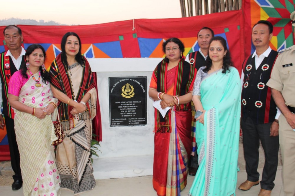 The 37th BN BSF Chedema organized a series of civic action programmes in Chedema village, Chedema Model Village and Keyakie, Kohima on March 7. During the same, Pubali Sonowal, president BWWA of M&C frontier (Manipur, Mizoram, Nagaland & Cachar Assam) in the presence of Vinod Kumar, commandant of 37 Battalion BSF Chedema inaugurated the kitchen block at Malo-o Cultural Hall Chedema village as well as the school building of Civil School in Keyakie. Sports items were also distributed to the youths of the locals while the battalion commandant further assured that BSF Chedema would be organising similar programmes and reach out to assist and help the locals in every way possible.