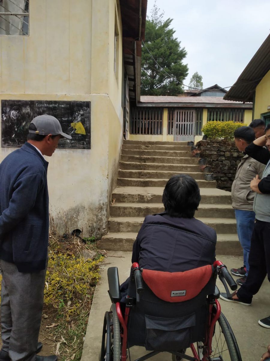 State Disability Commissioner Diethono Nakhro inspecting a government school in Jotsoma village for construction of ramps and other accessible facilities on March 8, 2019. (Photo Courtesy:scpd.nagaland.gov.in)