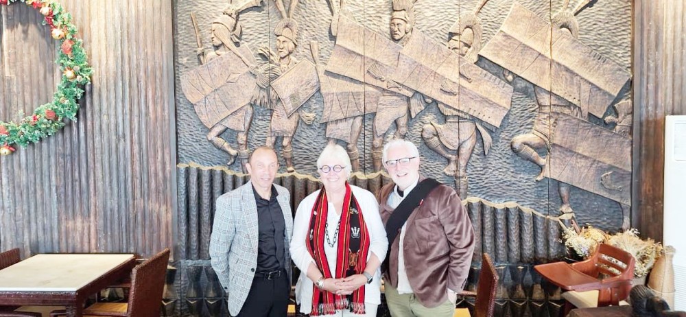 Footballer Terry Phelan, Professor Jane Ohlmeyer & Ireland Ambassador to India, Kevin Kelly at Hotel Vivor Kohima.
