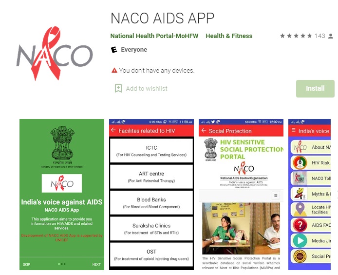 Another feature of this app is that it connects the users to two main information tools developed by the National AIDS Control Organization called the National HIV/AIDS Helpline 1097 and the NACO AIDS App.
