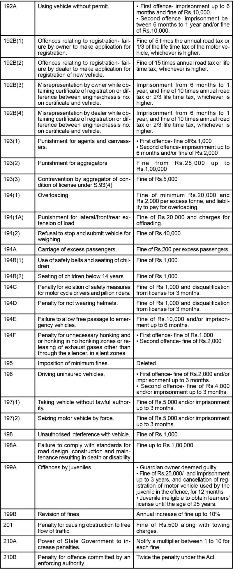 In supersession of Government of Nagaland Notification No TPT/MV/3/2013, dated 03/09/2015, and in exercise of powers conferred under Section 200 of the Motor Vehicle Act, 1989 as amended by the Motor Vehicle (Amendment) Act, 2019, the Government of Nagaland has empowered officers not below the rank of Assistant Road Safety and Enforcement Inspector under Motor Vehicle Department and Sub-Inspector of Police under Police Department either before or after institution of the prosecution under mentioned offences committed under Section 177, 178, 179, 180, 181, 182, 182A(1), 182A(3), 182A(4),182B, 183(1), 183(2), 184 only to the extent of use of handheld devices, 186, 189, 190(2), 192, 192A, 194, 194A, 194B. 194C, 194D, 194E, 194F, 196, 198 of the aforesaid Act for such amount as specified below: