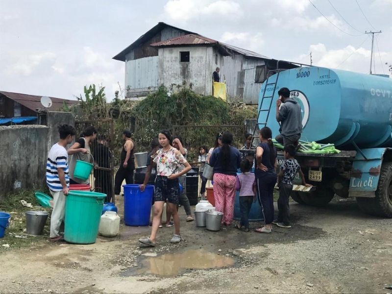 In this file photo, residents are seen lining up to collect water from a water supply vehicle.