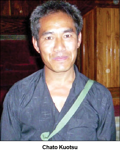 In the aftermath of the recently concluded NE – Expo, this reporter met a 40 year old man named Chato Kuotsu. He is a craftsman by occupation who hails from the Angami Naga tribe and resides in Khonoma village near Kohima. In the process of our conversation, it was learnt that he was awarded the National award for Master Craftsmen and Weavers for the two consecutive years of 2000 and 2001 for his excellence in the production of the “Angami Khophi” which is a traditional carrying basket. He said that he received this award in December 12, 2003 at Vigyan Bhavan, New Delhi.