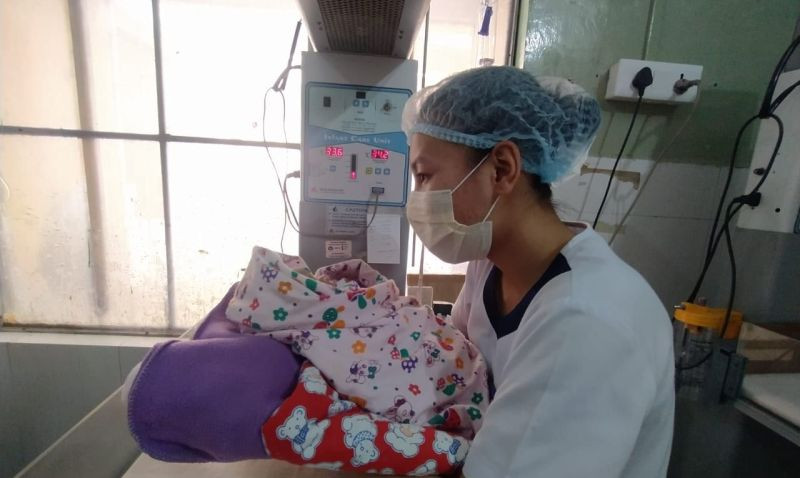 A nurse attends to a newborn at the Special Newborn Care Unit, Dimapur District Hospital. (Photo Courtesy: DPO, UIP/RCH)