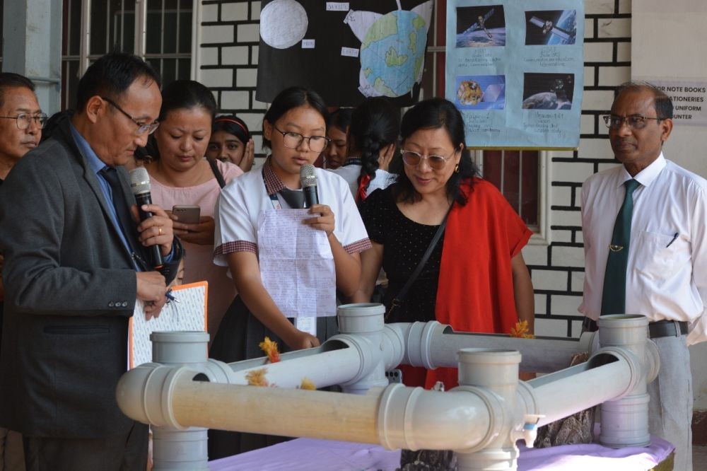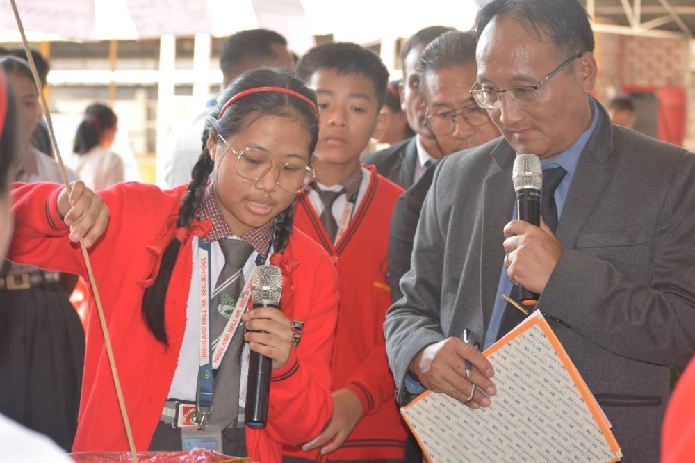 Rangumbuing Nsarangbe, Secretary & Chairperson (Additional Charge) of NBSE inspecting the exhibits and interacted with the participants during the science exhibition organised at Highland Hall Higher Secondary School, Chümoukedima on November 11.