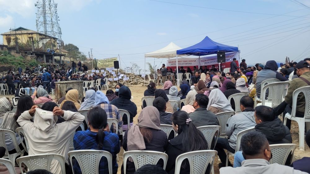 On the fourth day of the ongoing agitation by Nagaland Government Teachers’ Association (NGTA) 2010 and 2013 batches, the protest site saw a significant development on March 3. Naga Students’ Federation (NSF) and Eastern Naga Students’ Federation (ENSF) stepped in to extend their solidarity and assure their support.