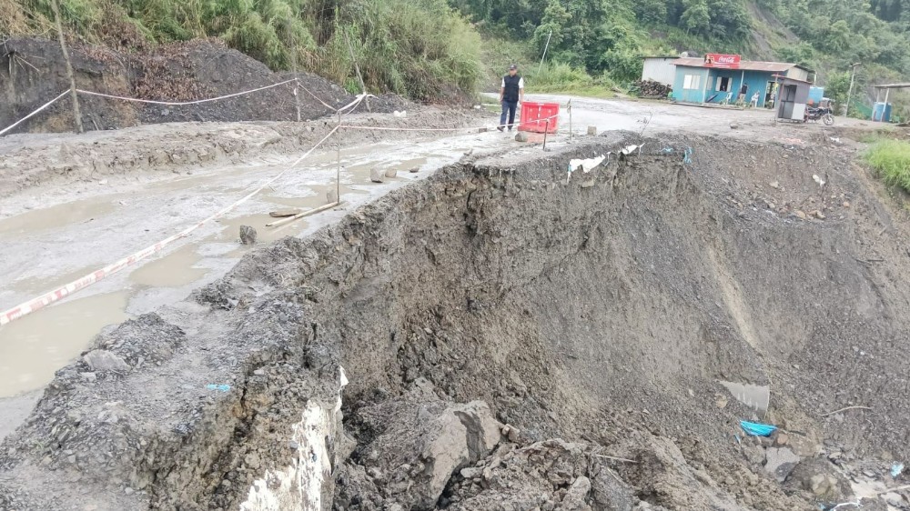 Damaged section of NH-29 near Kohima’s Old KMC dumping site.