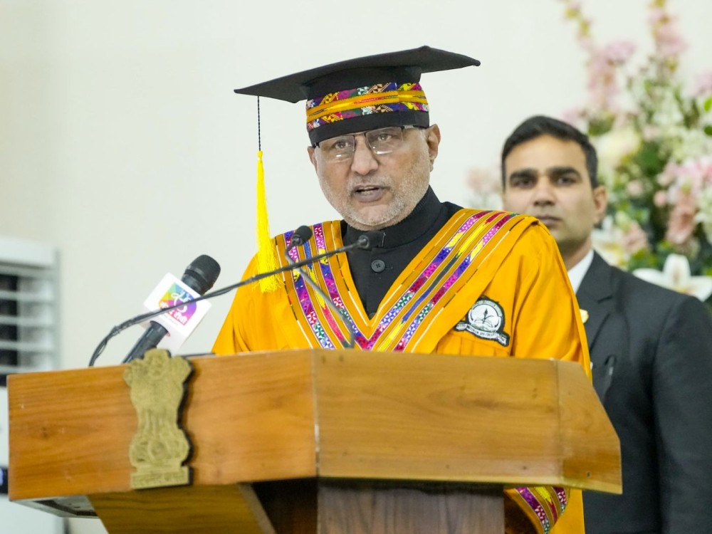 Aizawl: Vice President C. P. Radhakrishnan addresses the 20th Convocation of Mizoram University in Aizawl on Saturday, March 07, 2026. (Photo: IANS/X/@VPIndia)