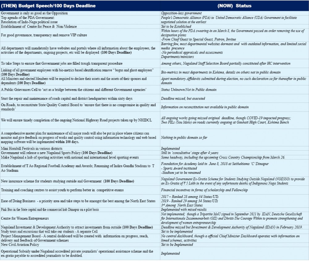 As Nagaland Chief Minister, Neiphiu Rio prepares to present State Budget for 2022-23 on March 22, The Morung Express presents a snapshot on the status of key policy announcement made his first Budget (2018-19) as well as the first Cabinet meeting of the then PDA Government on March 8.