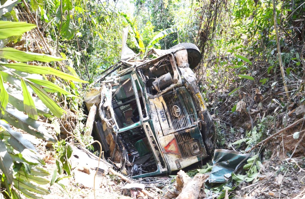 A Nagaland State Transport Bus plying between Kohima-Dimapur fell into a gorge in Pherima on the National Highway. Three persons were killed and 24 injured. Photo by Caisii Mao