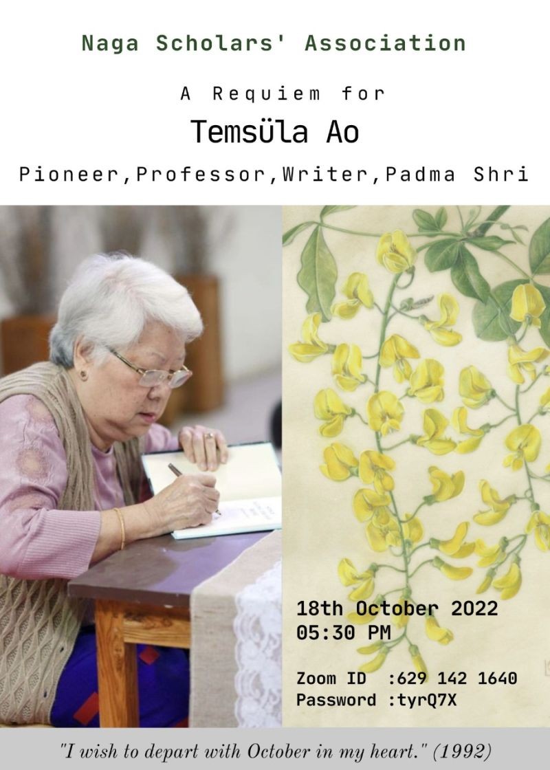 Nine days since the passing away of Temsüla Ao on October 9, the Naga Scholars’ Association (NSA) organised a Requiem— “Once Upon a Life: A Glimpse at Prof Temsüla Ao's Works (1945-2022)” in honour of her exemplary life and illustrious body of works on October 18 via Zoom.