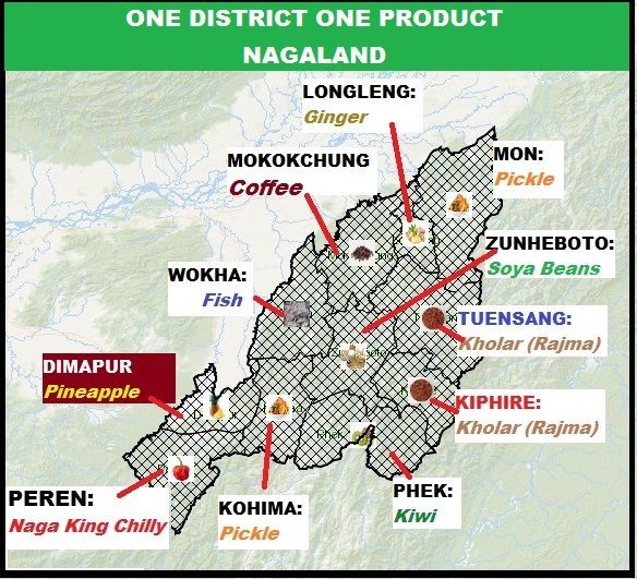 Peren and Phek were listed for Naga King Chilly and Kiwi respectively while it was coffee for Mokokchung and Soya Beans for Zunheboto.