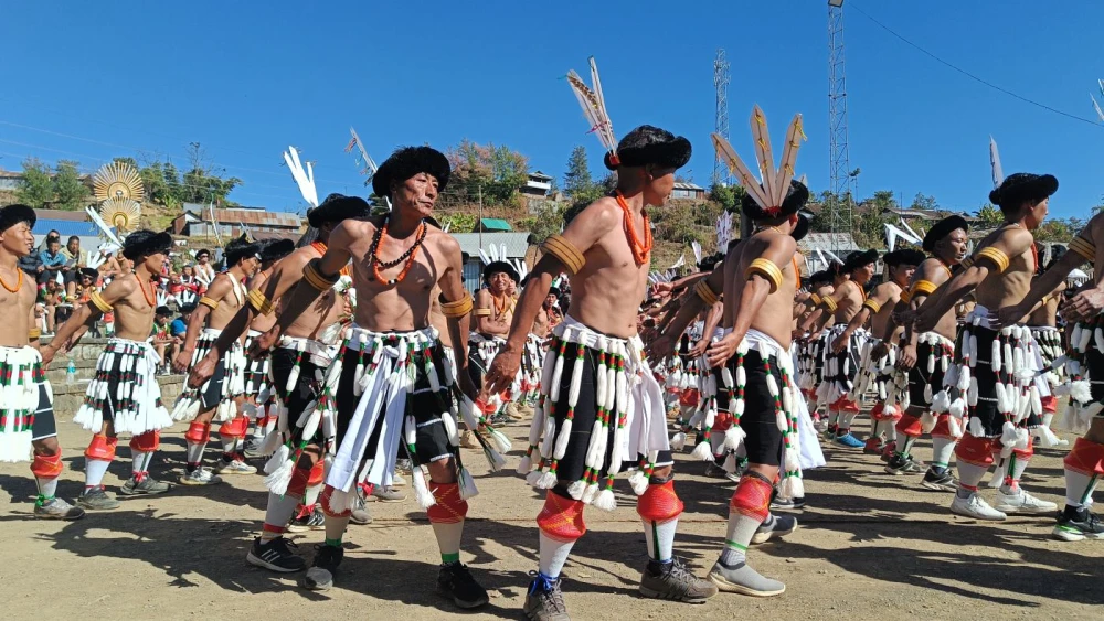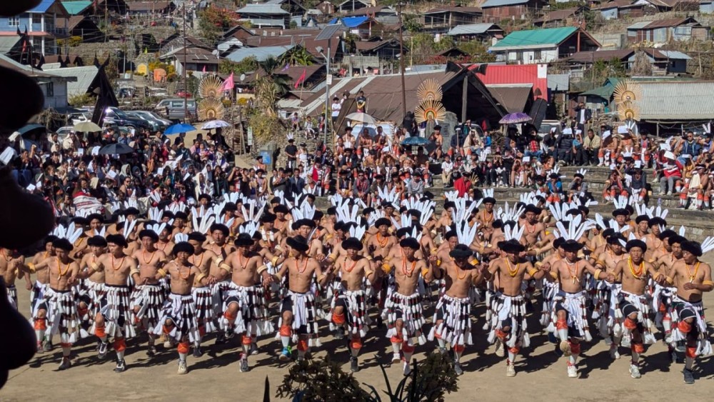Menfolk under Dume Sub-Council performing the signature dance of Dume comprising of 3 Khels- Krocha, Dukru and Movi. The dance, called “Dume Phisho” was performed at the Golden Jubilee Celebration of the Dume Sub-Council at Pame Tsüdu Zhavame on December 19.