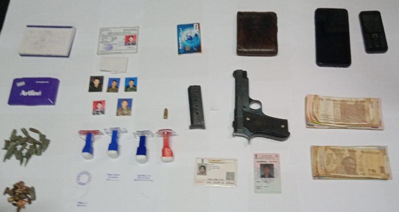 Police said that at around 3:30 pm, information was received from a trader, stating that two persons with weapons were extorting money from a shop in the name of a Naga political group.