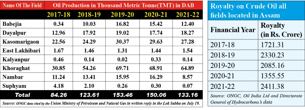 The data from the MoPNG, however, did not specify whether there royalty was from all oil fields located in Assam or those located at the DAB between Assam.