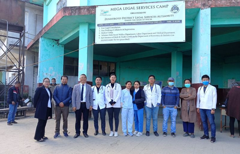 Zunheboto: Zunheboto DLSA held the Mega Camp at Deputy Commissioners' Complex on November 13. Keynote and benefits for the public for camp was highlighted and emphasized by Ajongba Imchen, Chairman, ZDLSA and inaugural speech was delivered by Peter Lichamo, Deputy Commissioner Zunheboto. The Medical department, Social Welfare Department, Economics and Statistics Department, Labour Department, Sakhi One Stop Center, Prosecution, PI staff and a special consultant from Mahatma Gandhi National Fellowship (MGNF) provided free services to beneficiaries. Altogether 1,295 beneficiaries availed different benefits from different departments and the public numbering 2167 attended the Mega Camp.