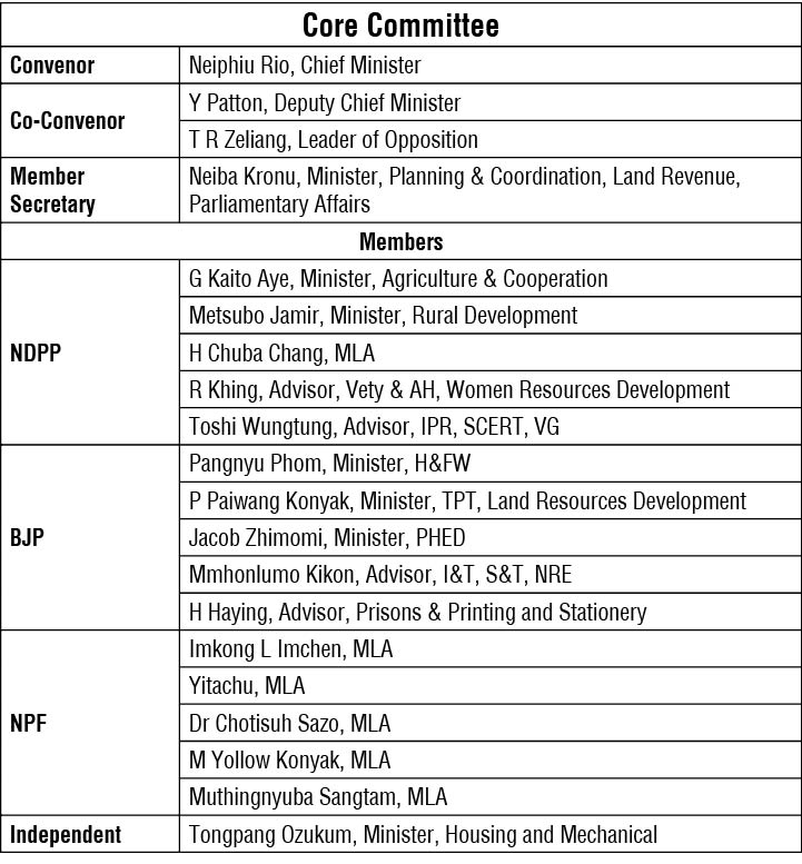 According to a notification issued by Nagaland Chief Secretary J Alam on June 16, the committee will be headed by Chief Minister Neiphiu Rio as Convenor and Deputy Chief Minister Y Patton and Deputy Chief Minister and Leader of Opposition TR Zeliang as Co-Convenors.