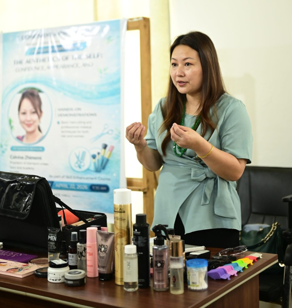 The resource person for the workshop was Calvina Zhimomi, proprietor of Glamazon Unisex Salon and Academy. With over 25 years of experience in the beauty industry, she has worked with reputed beauty brands and has also been associated with Lakmé Fashion Week.