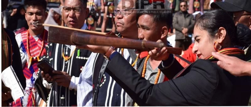 Dr Pritpal Kaur, SP Phek at the cultural day celebration organised by Phoyisha Cultural Organisation at Yisisotha village, Meluri on January 10. (DIPR Photo)